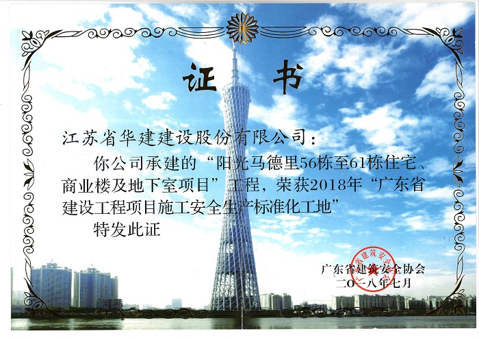 陽光馬德里獲2018年廣東省建設工程項目安全生產生產標準化工地