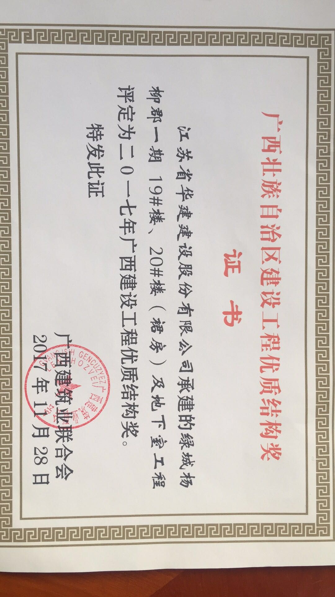 近期從廣西建筑業聯合會獲悉,我公司總承包施工的廣西自治區柳州市“綠城楊柳郡一期19#、20#樓(裙房)及地下室工程”和“綠城楊柳郡一期15#樓及地下室工程”兩項工程被評定為二0一七年廣西建設工程優質結構獎,這也是北京區域公司在廣西自治區獲獎的第一個項目。