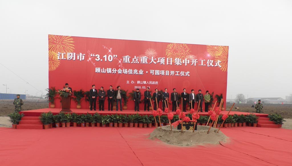 同日,由佳兆業集團投資、上海分公司承建的佳兆業·可園舉行了隆重的開工奠基典禮,該工程地處江蘇江陰市顧山鎮中心地帶,總建筑面積8萬多平方米、總工作量8000多萬元,有多幢多層和別墅建筑,此項目作為江陰市“3·13”重點重大工程,受到了當地政府的高度重視,江陰市政府和各轄鎮領導、顧山鎮全體黨政干部及佳兆業和上海分公司負責人出席了儀式。