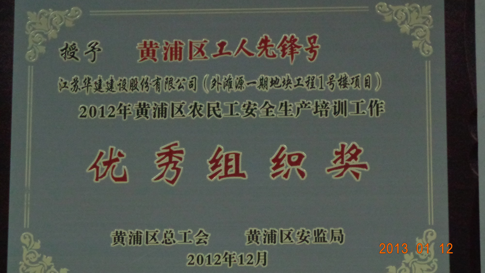 上海洛克外灘源一期被授予“黃浦區(qū)工人先鋒號” 時間:2013-01-12 6470 日前,在上海黃浦區(qū)總工會、黃浦區(qū)安監(jiān)局聯(lián)合組織的“工人先鋒號”評比中,由我公司組建的上海洛克外舉灘源一期被授予黃浦區(qū)工人先鋒號,同時還被授予2012黃浦區(qū)農(nóng)民工安全生產(chǎn)培訓(xùn)工作優(yōu)秀組織獎,周群利同志被評為2012年黃浦區(qū)農(nóng)民工安全生產(chǎn)培訓(xùn)工作先進(jìn)個人。