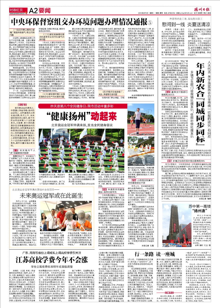 《揚州日報》:蘇中第一高樓——“揚州造” 時間:2016-08-09 4472 8月9日,《揚州日報》A2版以“蘇中第一高樓——‘揚州造’”為題,報道由上海區(qū)域公司蘇北分公司承建的泰州金融服務(wù)區(qū)項目。