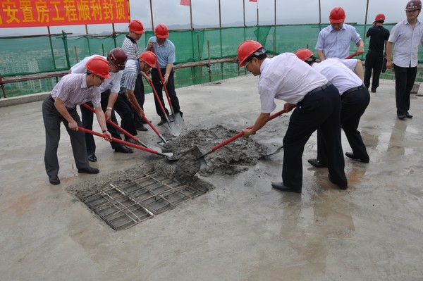 528上午,由惠州公司承建的歸難僑危房改造安置工程公寓安置房項目主體結構舉行了封頂儀式,惠州仲愷高新區委常委、區管委會副主任徐頌、周章玉出席典禮,仲愷區徐頌常委和惠州公司華恒榮總經理分別代表項目所在地仲愷高新區和投資建設施工單位江蘇華建作了致辭封頂儀式由仲愷區投資控股公司總經理周獻國主持,工程各相關單位負責同志及潼僑鎮僑民代表出席了儀式。