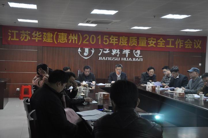 會議聽取了江蘇華建惠州區域公司關于2014年度技術質量和安全文明生產工作的總結及2015年的工作打算,審議并通過了2014年度科技進步、質量創優、安全責任目標考核獎勵的決定,簽訂了《2015年建設工程質量責任書》和《2015年安全生產和環境保護目標管理責任書》,學習了安全生產法及創魯班獎工程匯報視頻。