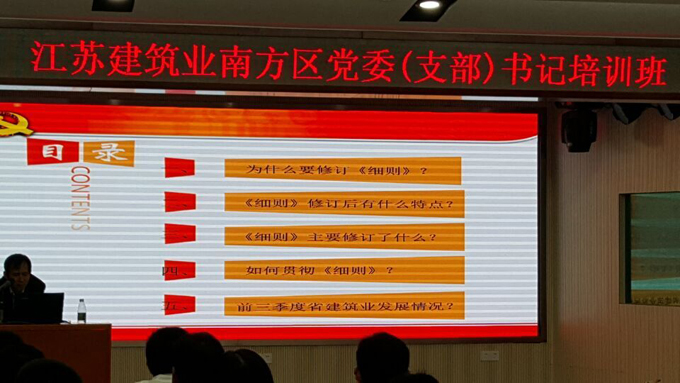 會上,江蘇省住房和城鄉建設廳機關黨委副書記丁舜祥針對《中國共產黨發展黨員工作條例》作了專題講座,詳細講解工作條例的主要內容和特點、發展黨員工作的總要求、發展黨員工作的基本原則、黨員發展的條件標準、發展黨員的主要流程等方面內容,并針對南方地區基層組織發展中存在的一些問題提出了明確要求。江蘇省住房和城鄉建設廳駐南方辦事處主任朱躍斌傳達了《住建廳黨組書記顧小平在廣東省調研重要講話指示精神》以及《住建廳駐外辦事處民工工資清欠工作精神》,并對建筑企業的進一步發展提出了指導性意見。