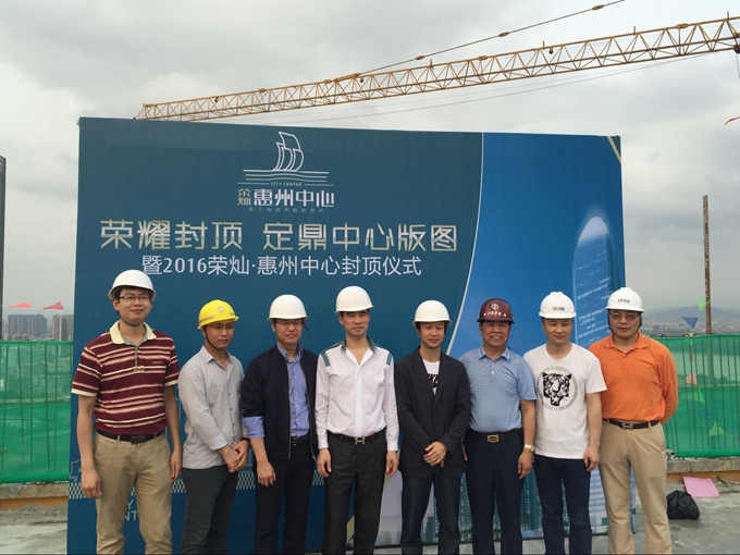 4月17日,由惠州公司承建的榮燦•惠州中心住宅工程舉行了隆重的封頂儀式,惠州公司機關全體人員及工程處、項目部相關人員出席參加。