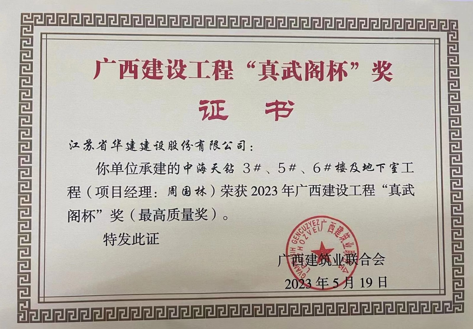 近日,廣西建筑業聯合會網站公布了《關于公布2023年廣西建設工程“真武閣杯”獎(最高質量獎)工程名單的通知》,由公司承建的中海天鉆3#、5#、6#樓及地下室工程、中海天鉆2#、7#、8#樓及地下室工程名列榜單。下一步,公司將進一步提高創新創優意識,提升項目精細化管理水平,以匠心精神打造更多優質工程,持續擦亮華建品牌。