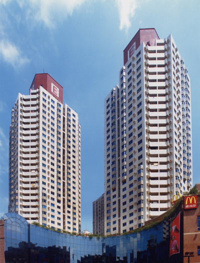 深圳中山花園大廈工程,地下2層,地上37層,建筑面積68498平方米,建筑高113.6米。由一裙兩塔組成,地下室主要為停車庫及設備用房,裙房主要為辦公用房,塔樓為商品住宅樓。工程結構為人工挖孔砼灌注樁基礎,框支剪力墻結構。工程由北京市建筑設計研究院深圳分院設計。進行基礎,基坑開挖采用帶錨桿鋼筋砼連續薄墻的方法護坡,承臺基礎大體積砼澆筑,在材料、澆搗、養護等方面采取綜合措施,有效防止砼產生裂縫現象。