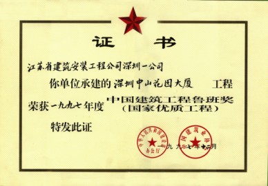 設備安裝工程,嚴格執行了三檢制度,層層把關,電氣、給排水系統經測試,均滿足設計要求。工程于1996年10月被評為深圳優質樣板工程第一名,1996年11月獲江蘇省優質工程金牌獎,繼后榮獲1997年度建筑工程魯班獎。