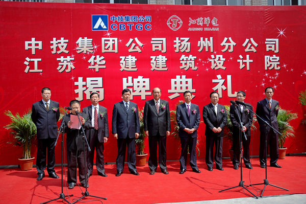江蘇華建建筑設計院、中技集團揚州分公司舉行隆重揭牌典禮 時間:2009-04-18 11579 4月18日,江蘇省華建建設股份有限公司建筑設計院、中國建筑技術集團有限公司揚州分公司舉行隆重揭牌典禮。這是我公司與中技集團開展戰略合作、尋求優勢互補的創新之舉,對兩個知名品牌強強聯合、共利雙贏具有重要意義。典禮由公司副總經理程杰主持,中技集團董事長黃強、公司董事長陸金龍、江蘇華建設計院院長黎裕華、中技集團揚州分公司總經理施衛東先后發表講話。中技集團副總裁王京豐,公司領導吳士茂、徐仁國、陳榮春參加儀式。