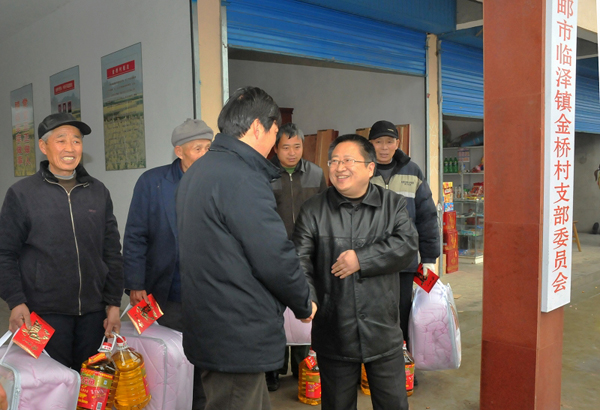 210日,公司副總經理程杰一行冒雨赴公司對口扶貧的高郵臨澤鎮金橋村進行走訪慰問。程總參觀了由我公司支持建成的金橋村村民服務中心,了解去年該村的基本情況和今年的發展打算,程總希望金橋村今后要在扶持特色產業上作文章,努力形成自力更生,自我造血的能力。隨后,程總看望了當地低收入貧困農戶,給他們送去節日的問候和慰問品。
