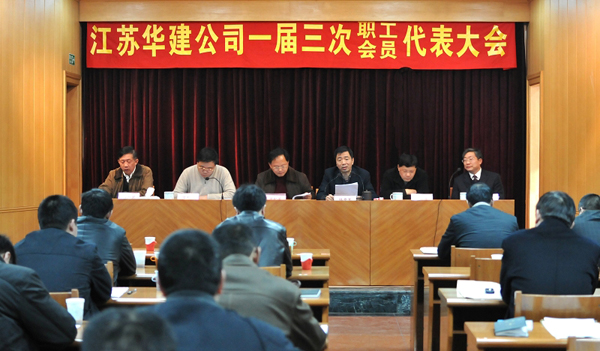 223日,公司一屆三次職工代表大會在總部會議室召開。大會聽取和審議了總經理宗有農所作的《行政工作報告》、工會主席徐仁國所作的《工會委員會工作報告》、以及工會經費審查委員會主任李長棟所作的《2009年工會經費審查委員會工作報告》,并對工會主席、副主席和工會職工之家建設情況進行評議,會議還審議通過了《江蘇華建集體合同》、《江蘇華建工資協商專項集體合同》、《江蘇華建女職工權益保護專項集體合同》等三個合同。