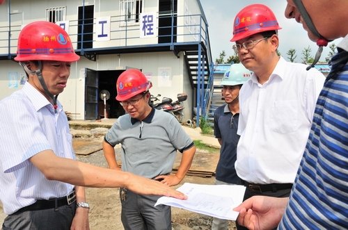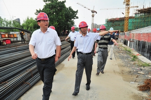 812日下午,揚(yáng)州市政府副市長陳揚(yáng)、市建設(shè)局局長楊正福一行前往江蘇華建代建的揚(yáng)州建設(shè)大廈暨規(guī)劃展覽館、市民中心項(xiàng)目工地現(xiàn)場視察。揚(yáng)州建工控股公司、江蘇華建董事長陸金龍陪同視察,并將工程施工進(jìn)展情況向陳副市長作了簡要匯報(bào)。陳副市長對建設(shè)大廈總體施工進(jìn)展表示滿意,并提出希望所有參建單位精心組織,科學(xué)管理,確保這一政府重點(diǎn)工程建設(shè)順利推進(jìn)。公司領(lǐng)導(dǎo)程杰等一起陪同視察。
