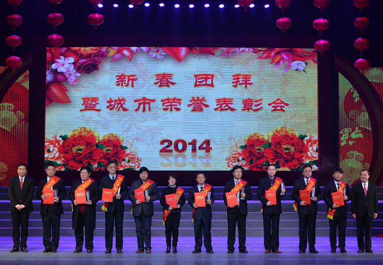 在1月12日晚揚州市委、市政府召開的2014新春團(tuán)拜暨城市榮譽表彰會上,公司副董事長、總經(jīng)理宗有農(nóng)當(dāng)選為“揚州市十大功臣”,揚州市委書記謝正義親自為宗有農(nóng)總經(jīng)理頒獎。