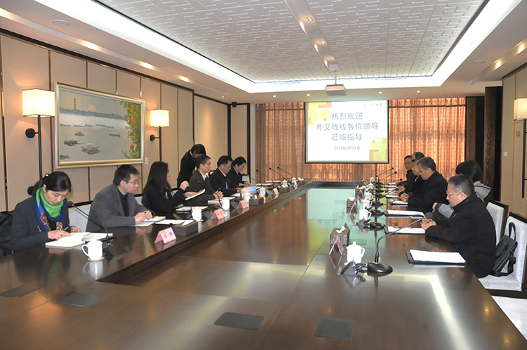 2月25日上午,國(guó)家外交部外事管理司廖力強(qiáng)司長(zhǎng)、中央外辦外管局宋軍處長(zhǎng)等一行5人,在省外辦副主任張松平、揚(yáng)州市副市長(zhǎng)汪志堅(jiān)、市外辦副主任徐靜等陪同下,到江蘇華建開展外事工作服務(wù)企業(yè)發(fā)展專題調(diào)研,公司領(lǐng)導(dǎo)陸金龍、陳榮春、程杰、陸俊等一同接待。