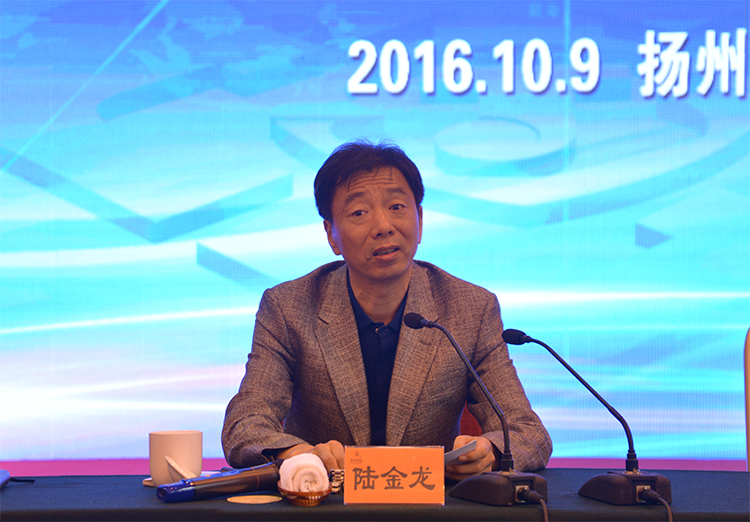 ▲揚(yáng)州生態(tài)科技新城黨工委書記、華建聯(lián)盟名譽(yù)主席陸金龍講話