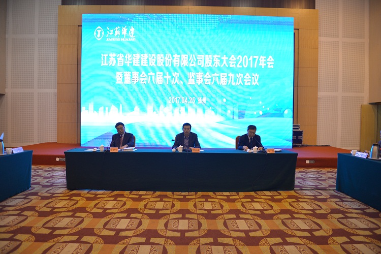 425日上午,江蘇華建股東大會2017年會在揚州召開。各股東代表和公司董事、監事出席會議,公司高級管理人員、各分支機構和總部各部室負責人、律師團律師列席會議,王宏董事長主持會議,揚州市副市長何金發出席會議并致辭。