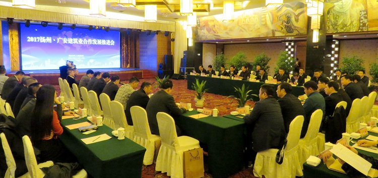 11月17日,由公司承辦的揚州·廣安建筑業合作發展推進會暨揚州建筑業形勢分析會在四川廣安召開,揚州市副市長何金發、廣安市委常委、常務副市長徐志文等政府領導參加會議,揚州各區(市、縣)分管領導、揚州、廣安住建系統有關負責同志及企業代表等共70人參加會議,公司領導王宏、程杰、李長棟等參加了上述活動。