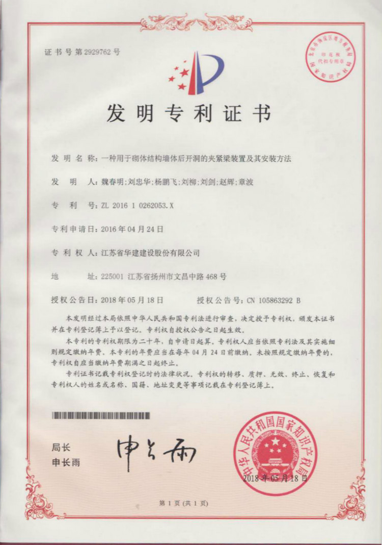 江蘇華建再獲1項發明專利、3項實用新型專利 時間:2018-06-07 3063 日前,從國家知識產權局傳來喜訊,江蘇華建發布的《一種用于砌體結構墻體后開洞的夾緊梁裝置及其施工方法》獲得發明專利授權(專利號:ZL201610262053.X),《一種建筑板材角磨機》(專利號:ZL201720592798.2)、《一種建筑施工用鋼筋切斷機》(專利號:ZL201720593659.1)、《一種建筑施工用混凝土攪拌機》(專利號:ZL201720593516.0)獲得實用新型專利授權。