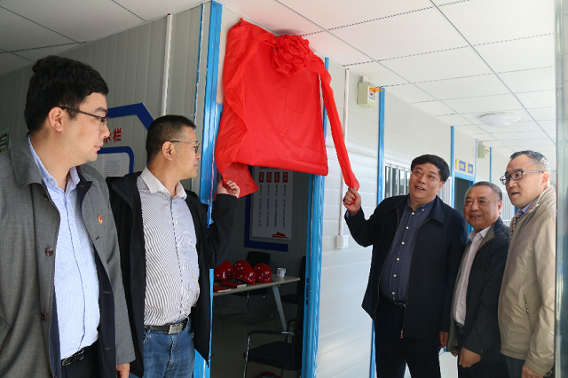 揚州分公司黨支部副書記施衛東宣讀了關于華建黨委同意成立江蘇華建GZ076地塊項目部臨時黨支部的批復,錢啟明和施衛東為“江蘇華建GZ076地塊項目臨時黨支部”揭牌,開啟了支部建設新征程,現場全體人員共同見證了這個難忘的時刻。
