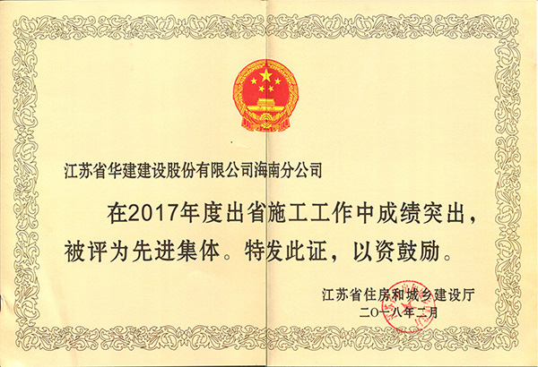 海南公司連續(xù)六年榮獲江蘇出省施工先進(jìn)集體