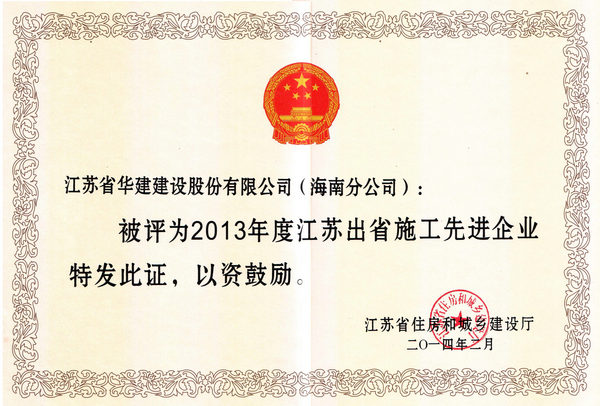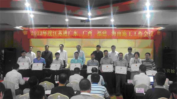 海南分公司榮獲2013年江蘇進粵、桂、閩、瓊施工先進企業