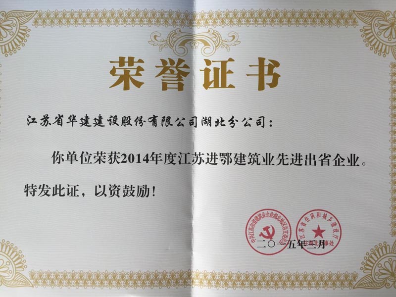 大會還表彰了一批先進企業和先進個人。江蘇華建湖北分公司首獲"江蘇進鄂建筑業先進出省企業"稱號,分公司總經理呂進榮獲“江蘇進鄂企業優秀企業經理”,蘆開春被表彰為“江蘇進鄂建筑業優秀建造師”。
