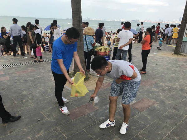 他們踏著共享單車,迎著驕陽,沿著美麗的濱海大道一路騎行,感受自然,宣傳健康生活的理念。同時,在騎行路線的終點假日海灘,大家開展公益凈灘行動,拾撿垃圾,擁抱大海,用實際行動來支持海洋保護。