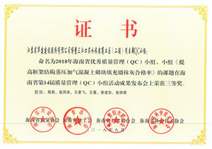 海南公司五項QC成果獲得省級表彰 時間:2018-09-03 3085 日前,海南省質量協會公布了2018年海南省“優秀質量管理(QC)小組”活動成果評比結果,海南分公司共有5項成果受到表彰。其中,海花島2#島三(一)期2-10-1地塊QC小組榮獲二等獎,博鰲三江口濱水旅游商業區(二期)項目部QC小組、三亞婦幼保健院整體搬遷(新址)建設項目QC小組、恒大海上帝景QC小組、華盛中央公園國際公寓QC小組榮獲三等獎。 (技術質量處)