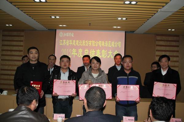 2013112,珠海區域公司在珠海公司會議室召開了2012年度總結表彰大會,各工程處主任、直管項目經理、先進個人代表、公司機關全體人員共66人參加了會議。會議由公司副總經理盧達同志主持,江蘇華建副總經理、珠海分公司總經理繆國樞同志作了工作報告。繆總的工作報告從七個方面對珠海區域公司2012年度的工作做了認真的總結,并對2013年的工作提出了打算。分公司副總經理嚴正濤同志在會上對區域公司2013年生產經營工作計劃作了解讀,對2013年的主要經營指標進行了分解,明確了各工程處(直管項目部)的具體指標任務。會議表彰了徐平等23名先進個人和“陽江陽光馬德里項目部”等3個先進單位,分公司副總經理、總工程師周學軍同志宣讀了表彰決定。大會結束后繆國樞總經理代表區域公司與2012年下半年新開工的5個項目部簽訂了修改后的內部承包協議書,修改后的內部承包協議加大了創建品牌的獎勵力度,激勵新開項目爭創優質工程,為提升企業形象,鑄造企業金字招牌多做貢獻。