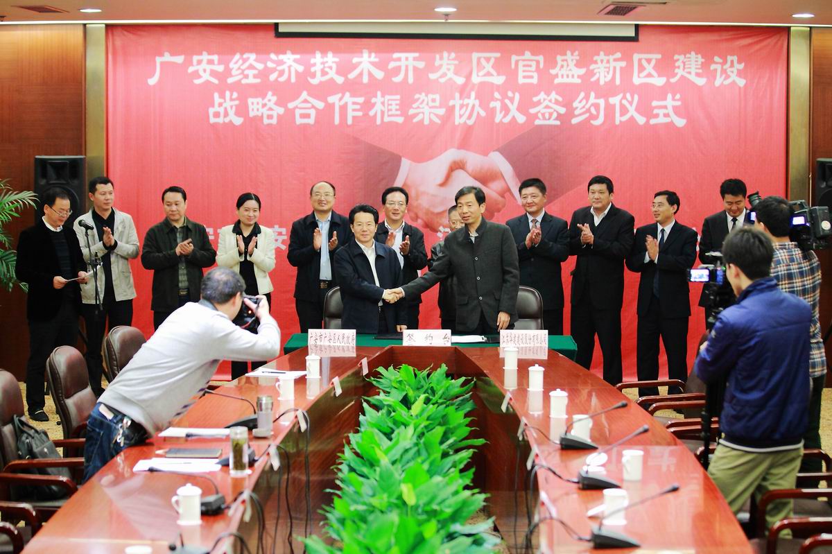 201311月22上午,在四川廣安思源酒店深圳廳,江蘇省華建建設股份有限公司與四川省廣安市廣安區政府《廣安經濟技術開發區官盛新區建設戰略合作框架協議》簽約儀式隆重舉行。該BT項目投資總額30億元。廣安市委常委、副市長蔣英勝、廣安區委書記文建平在簽約儀式上致辭,對江蘇華建積極響應“感恩小平,我為小平家鄉發展做貢獻”的號召到該區投資建設表示熱烈的歡迎,希望雙方不斷拓寬合作領域,進一步深化合作內容,在互利共贏中謀求更大發展,并堅信江蘇華建將在偉人故里大展宏圖,不斷壯大發展!