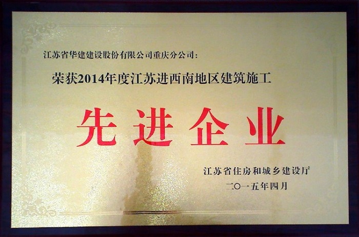 49日,2015年江蘇進西南建筑業工作會議在重慶召開,江蘇省住建廳建管局、重慶市建委有關領導出席會議。會議聽取了省廳駐西南辦事處2014年工作報告,同時對過去一年業績突出、表現優異的一批企業和個人進行了表彰。江蘇華建重慶分公司榮獲“2014年度江蘇進西南地區建筑施工先進企業”稱號,重慶分公司副總經理嚴正濤、二處主任余廣分別被表彰為2014年度江蘇出省施工優秀企業經理和先進個人,嚴正濤、黃橋獲評“優秀黨務工作者”。重慶分公司總會計師張勝濟代表公司在會上作了“適應新常態,打造在渝發展新模式”的交流發言