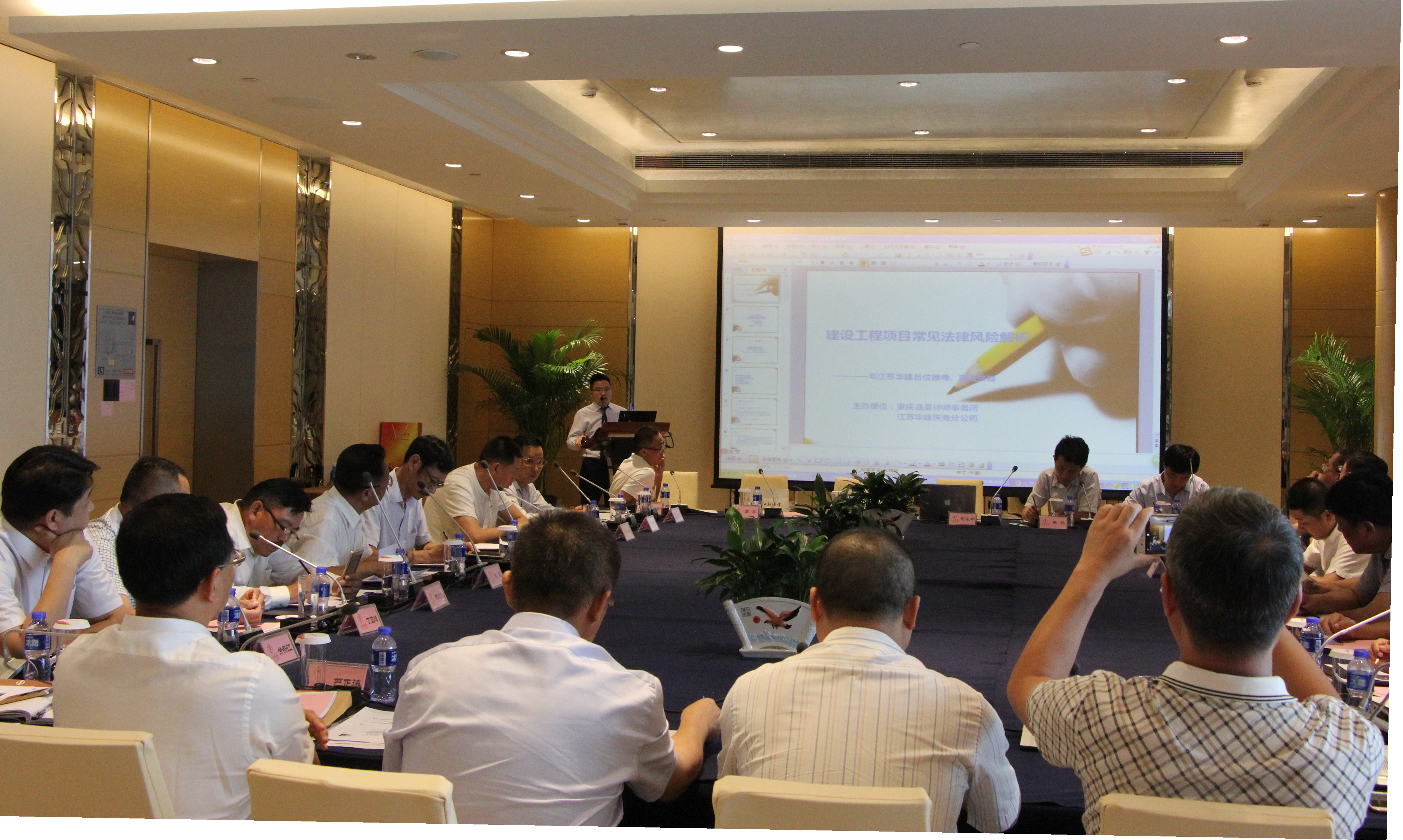 會議邀請重慶鼎圣律師事務所王小平律師就合同文件的簽署和交底、項目施工階段法律風險、項目竣工結算階段法律風險、職務法律風險、項目部管理法律風險等方面對建設工程項目常見法律風險進行解析。