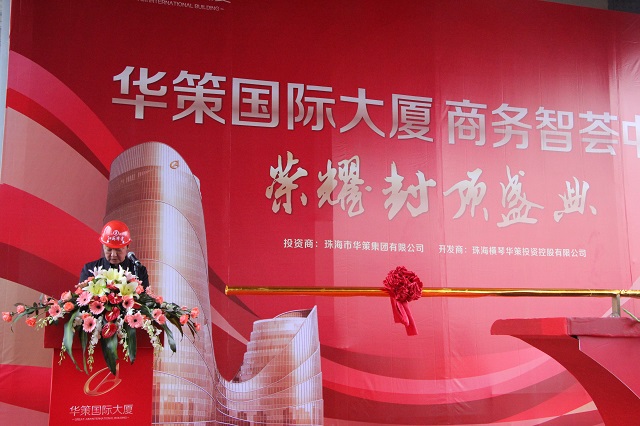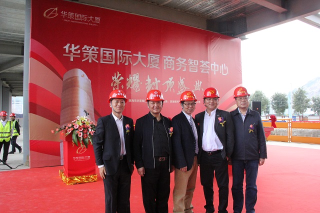 2017年1月9日,第八項目部承擔施工任務的華策國際大廈項目舉行主體結構封頂儀式。橫琴新區(qū)黨委副書記葉真、橫琴新區(qū)建設環(huán)保局局長劉晨光華策集團董事局主席楊峰、副主席楊智雄、總裁余道群江蘇華建副董事長、總經理宗有農、珠海公司總經理繆國樞、深圳公司常務副總吳碧橋、深圳公司副總經理蔣超,以及來自華策集團、設計單位、參建單位、監(jiān)理單位和珠海區(qū)域公司相關人員共200余人出席儀式。華策國際大廈整體分為東塔和西塔兩部分,西塔已于2016年11月8日封頂,隨著東塔的順利封頂,華策國際大廈全面封頂,并將于2017年部分投入使用,2018年底全部投入使用。