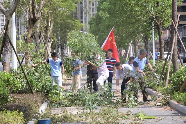 8月23日,珠海遭遇了53年來最強臺風(fēng)“天鴿”,全市受災(zāi)嚴(yán)重。臺風(fēng)過后,珠海公司第一時間迅速組織復(fù)產(chǎn)自救工作,并主動聯(lián)系珠海有關(guān)部門,迅速組織志愿者及重型工程車輛投入到社會道路的清理中去。在這場抗風(fēng)救災(zāi)的戰(zhàn)斗中,珠海公司共疏通社區(qū)道路5條、市政道路3 條,清走倒伏大樹200余棵,運送災(zāi)后垃圾 20車次。《揚州日報》A3版顯著位置對公司抗風(fēng)救災(zāi)活動進行了報道,點評江蘇華建珠海公司“眾志成城,生產(chǎn)自救,展現(xiàn)了揚州建筑大軍的良好形象”。