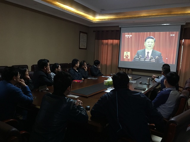部分出差在外的員工也積極爭取時間用手機等移動設備收看收聽大會報告。同時,區域公司所有項目部也通過電子顯示屏、懸掛條幅等方式熱烈祝賀黨的十九大勝利召開。