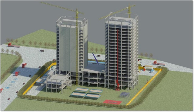 橫琴隆義廣場(chǎng)項(xiàng)目位于珠海橫琴自貿(mào)區(qū),工程造價(jià)為16000萬(wàn)元,建筑面積約60000平方米,由1棟17層和1棟20層的塔樓組成,最大高度為85.8米,合同工期730天。建成之后將成為橫琴島上的高檔酒店和寫(xiě)字樓。該工程運(yùn)用BIM技術(shù),珠海公司聯(lián)合華建設(shè)計(jì)院建立項(xiàng)目BIM設(shè)計(jì)模型,完成了多專業(yè)碰撞檢查、模型二次深化設(shè)計(jì)、凈高分析等工作。此外,公司在項(xiàng)目施工中還基于高精度BIM施工模型做到了施工臨時(shí)場(chǎng)地布置、BIM樣板引路、機(jī)電管線綜合優(yōu)化、鋁合金模板預(yù)拼裝、腳手架系統(tǒng)深化設(shè)計(jì)、動(dòng)態(tài)可視化交底、施工進(jìn)度計(jì)劃及造價(jià)控制等工作的優(yōu)化管理,項(xiàng)目結(jié)合二維碼的協(xié)同管理云平臺(tái),實(shí)現(xiàn)了“工廠預(yù)制加工”“掃碼組裝”“二維碼安全技術(shù)交底”“設(shè)備信息錄入”等智能化操作,在保證施工質(zhì)量的同時(shí)也極大地提高了協(xié)同工作的效率,使項(xiàng)目在施工成本、進(jìn)度、安全、質(zhì)量等方面的管理效率得到了巨大提升。