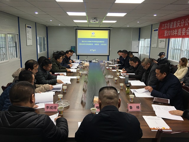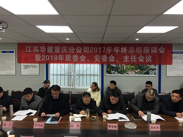 1月26日,重慶分公司在岳池錦繡新城項目部會議室召開2017年年終總結座談會暨2018年首次質委會、安委會、主任會議,公司常務副總經理程杰、總會計師李長棟、珠海區域公司總經理呂方達和重慶分公司經營層、各部門負責人及各工程處、直管項目部負責人共24人參加了會議。