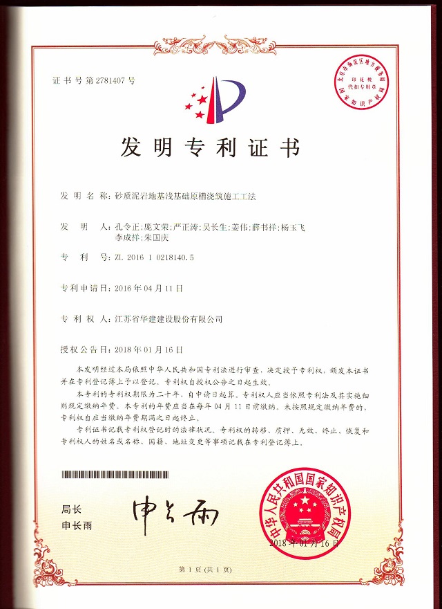 近日,從國家知識產權局傳來好消息,重慶分公司申報的技術成果《砂質泥巖地基淺基礎原槽澆筑施工工法》獲得國家發明專利授權。該發明專利重慶分公司獲得的首個國家發明專利至此,珠海區域公司國家發明專利已達兩項。