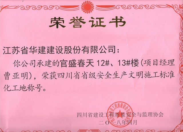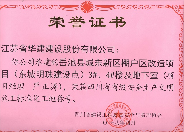 重慶分公司2項目獲評“四川省安全生產(chǎn)文明施工標(biāo)準(zhǔn)化工地” 時間:2018-04-20 2941 4月18日,重慶分公司項目創(chuàng)優(yōu)再獲新成果,公司承建的岳池縣城東新區(qū)棚戶區(qū)改造項目(東城明珠建設(shè)點)3#、4#及地下室、官盛春天12#、13#樓被四川省建設(shè)工程質(zhì)量安全與監(jiān)理協(xié)會評為“四川省省級安全生產(chǎn)文明施工標(biāo)準(zhǔn)化工地”。至此,重慶分公司獲省級標(biāo)化工地獎項已達(dá)3項。