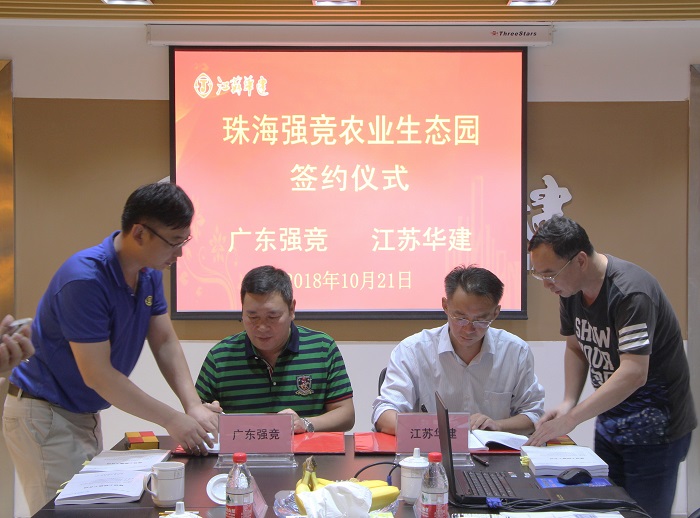20181021日,公司舉行珠海強競農業生態園項目簽約儀式,珠海區域公司總經理呂方達與強競農業集團董事長劉強代表雙方簽訂《建設工程施工合同》。