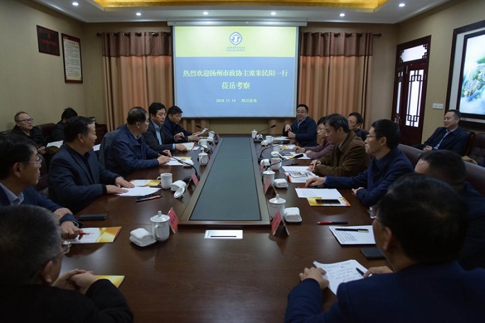 1114日,揚州市政協主席朱民陽、副市長劉禹同、市政協副主席王駿等一行在廣安考察期間,專程蒞臨岳池分公司視察指導。廣安市委常委、副市長陽勇,岳池縣委書記鄭鵬程,縣委常委、副縣長劉俊和江蘇華建常務副總經理程杰、副總經濟師、珠海區域公司常務副總兼重慶分公司總經理嚴正濤等陪同考察。