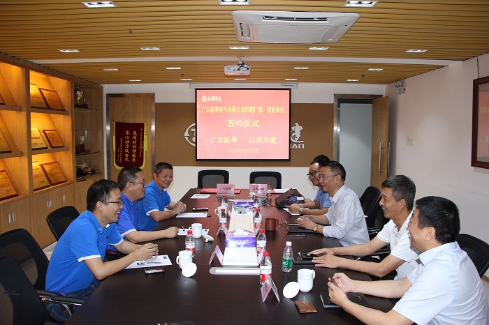 4月23日,公司舉行廣東航粵四期廠房項目簽約儀式。公司總經理呂方達、副總經理、總工程師周學軍、副總經理朱濤和廣東航粵電氣有限公司董事長楊建豐、總經理岳曉訪、董事長助理黃創群等參加簽約儀式。