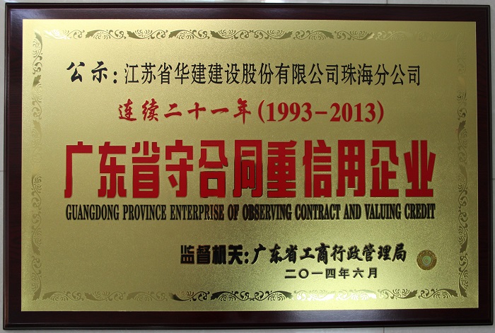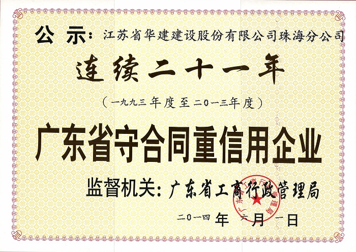 2014廣東省連續二十一年守合同重信用企業