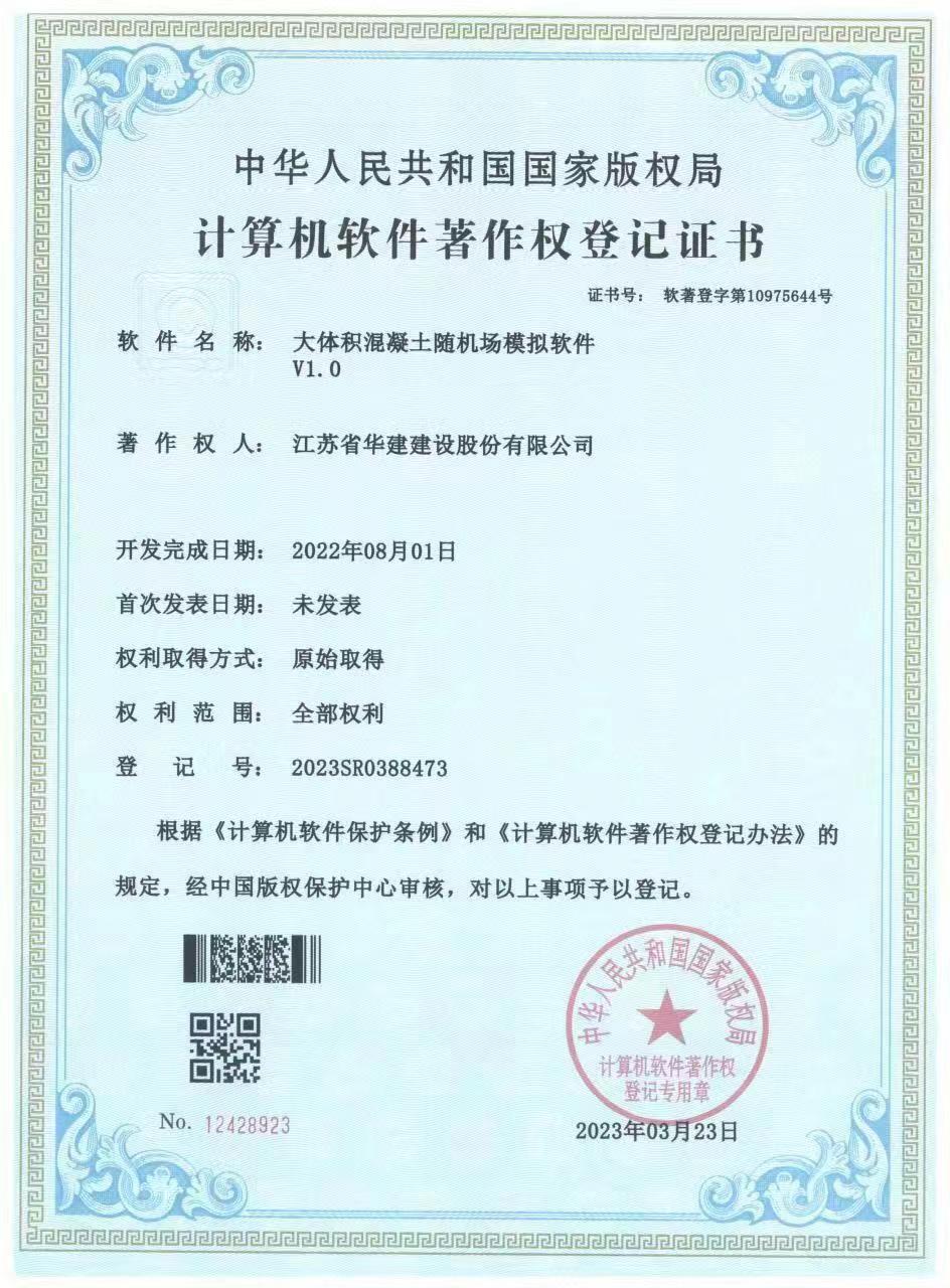 近日,國家版權(quán)局對江蘇華建自主研發(fā)的《大體積混凝土隨機(jī)場模擬軟件V1.0》軟件產(chǎn)品進(jìn)行了知...