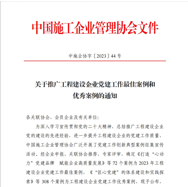 6月2日,中國施工管理企業(yè)協(xié)會(huì)發(fā)布2023年度全國工程建設(shè)企業(yè)黨建工作創(chuàng)新典型,江蘇華建申...