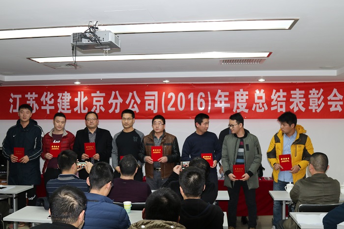 17下午,北京公司在機關會議室舉辦了2016年度總結表彰會。北京公司總經理呂進及北京公司經營班子全體成員出席會議,各工程處負責人及主要管理人員、公司機關全體人員以及先進集體和先進個人代表等近70人參會。江蘇省駐京辦建管處程剛副主任專程到會指導工作。